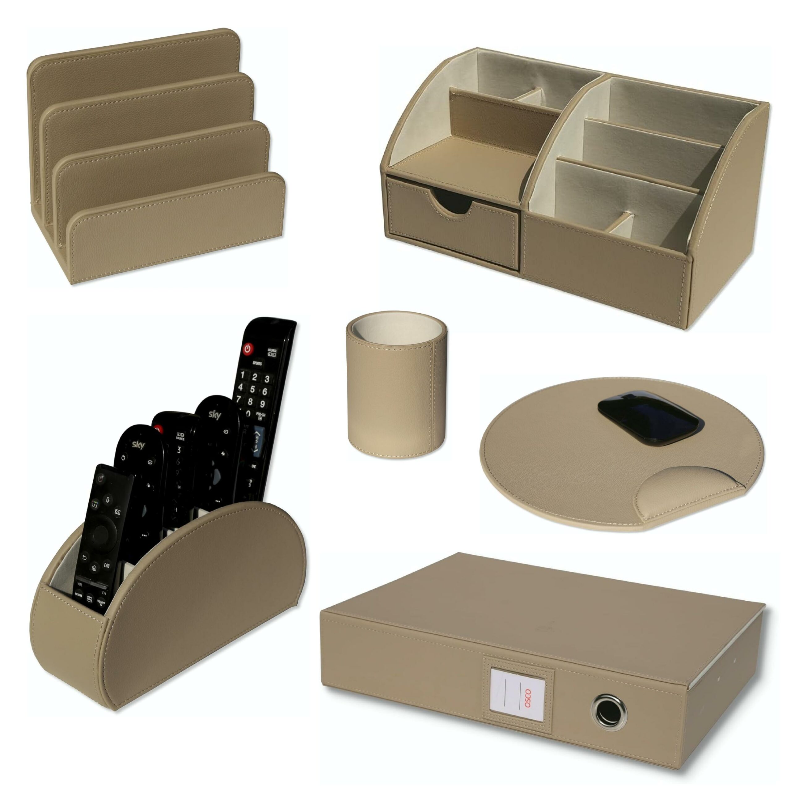 Desktop Accessories Faux Leather Taupe OSCO
